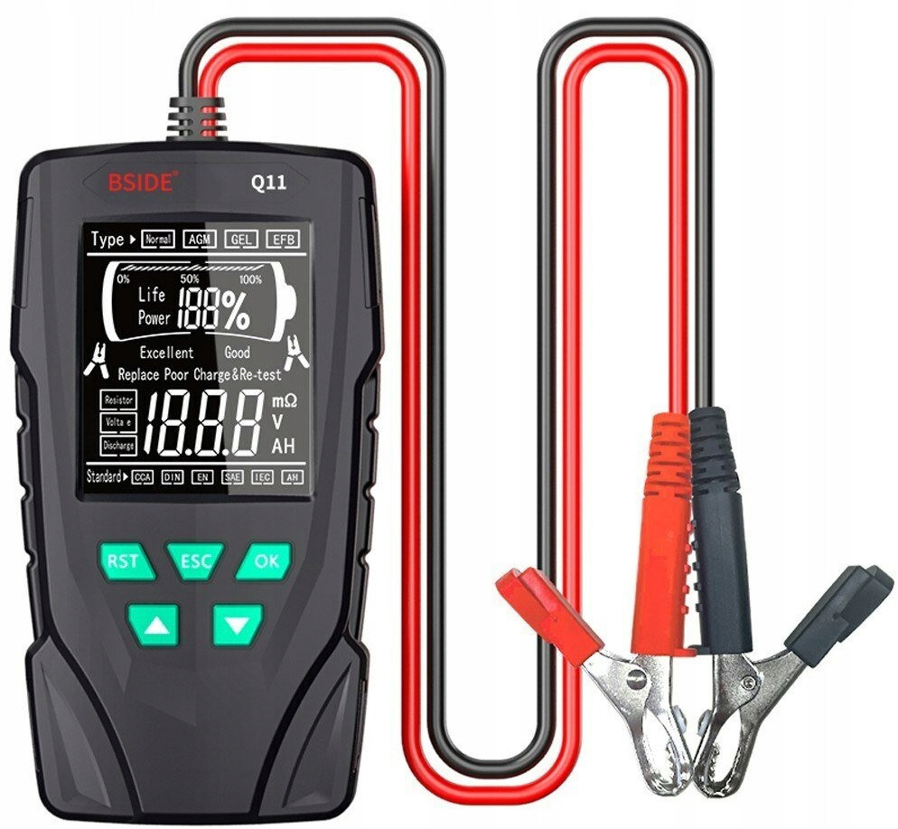 Tester akumulatorów samochodowych Bside Q11 to niewielkich rozmiarów, lekkie i praktyczne urządzenie, które służy do pomiaru i analizy wydajności akumulatorów kwasowo-ołowiowych.