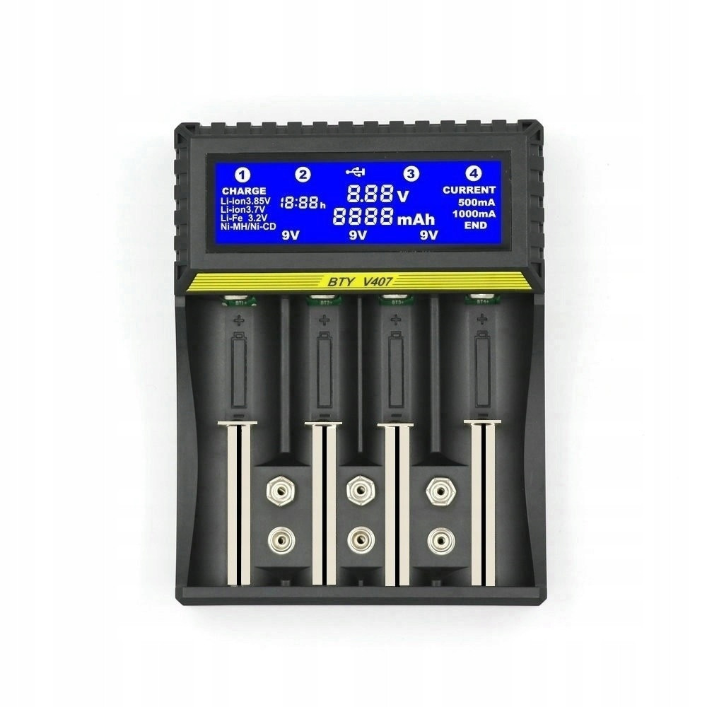 kompatybilny z akumulatorami litowo-jonowymi (4.2V/4.35V) 9V(6F22) LiFePO4(3.6V), Ni-MH/Ni-Cd(1.48V) 9V(6F22). i wszystkie różne rodzaje cylindrycznych akumulatorów litowych.
