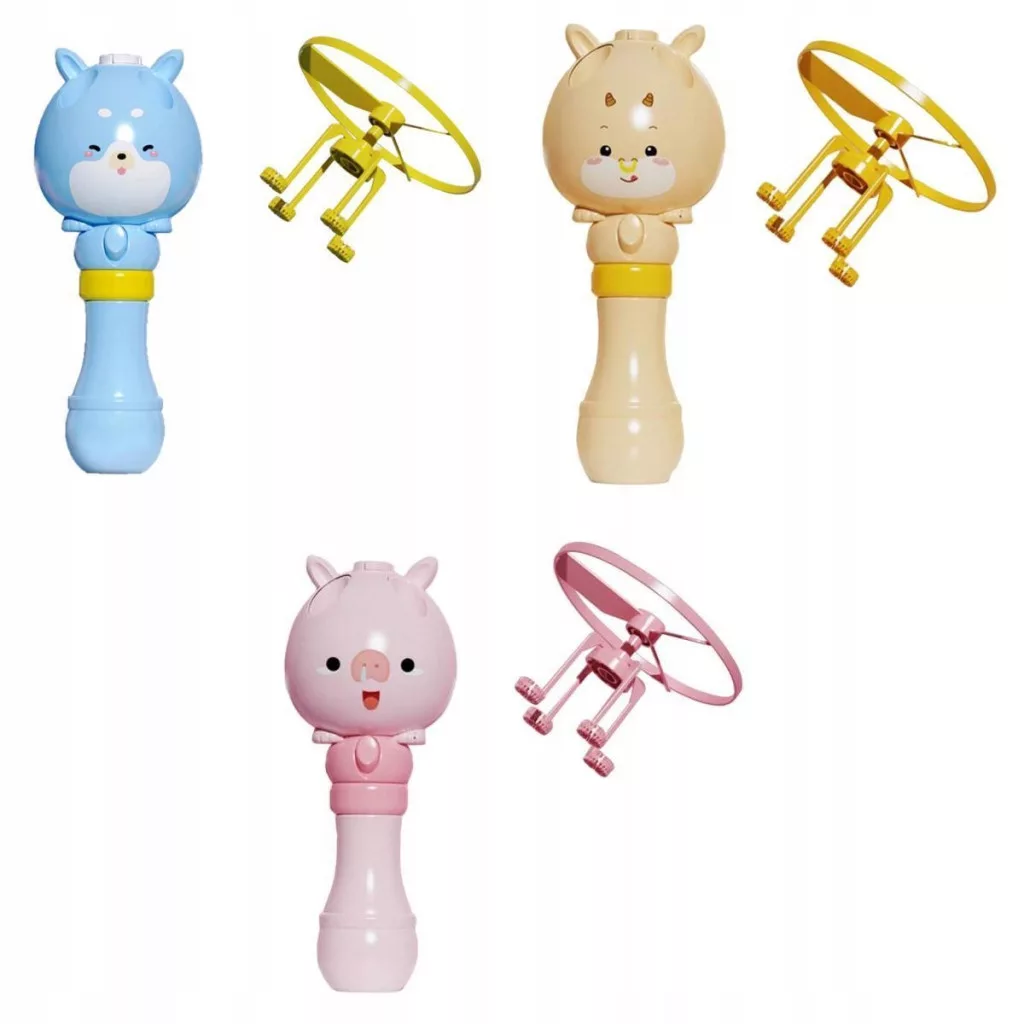 Kiedy bambusowa ważka pokryta płynem bąbelkowym wzbija się na wysokość 10 metrów, kolorowe bąbelki przynoszą dzieciom.
