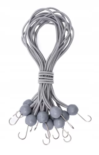 • Uniwersalne zastosowanie – gumowe napinacze Nadają się nie tylko do mocowania plandek, ale również do namiotów, banerów, pawilonów i wielu innych przedmiotów.