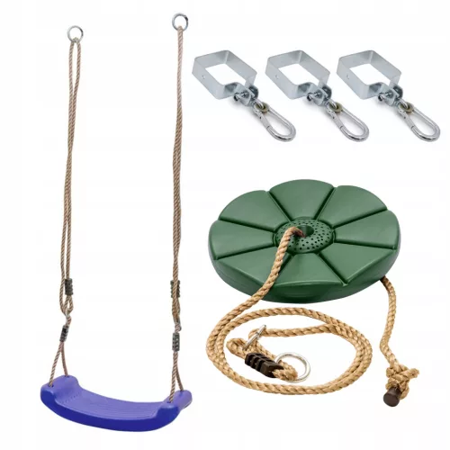 ✨ Zestaw huśtawek: niebieska huśtawka i ciemno zielone siedzisko kwiatek | Huśtawki - Deska i Kwiatek | Mocowania ze stali galwanizowanej✨