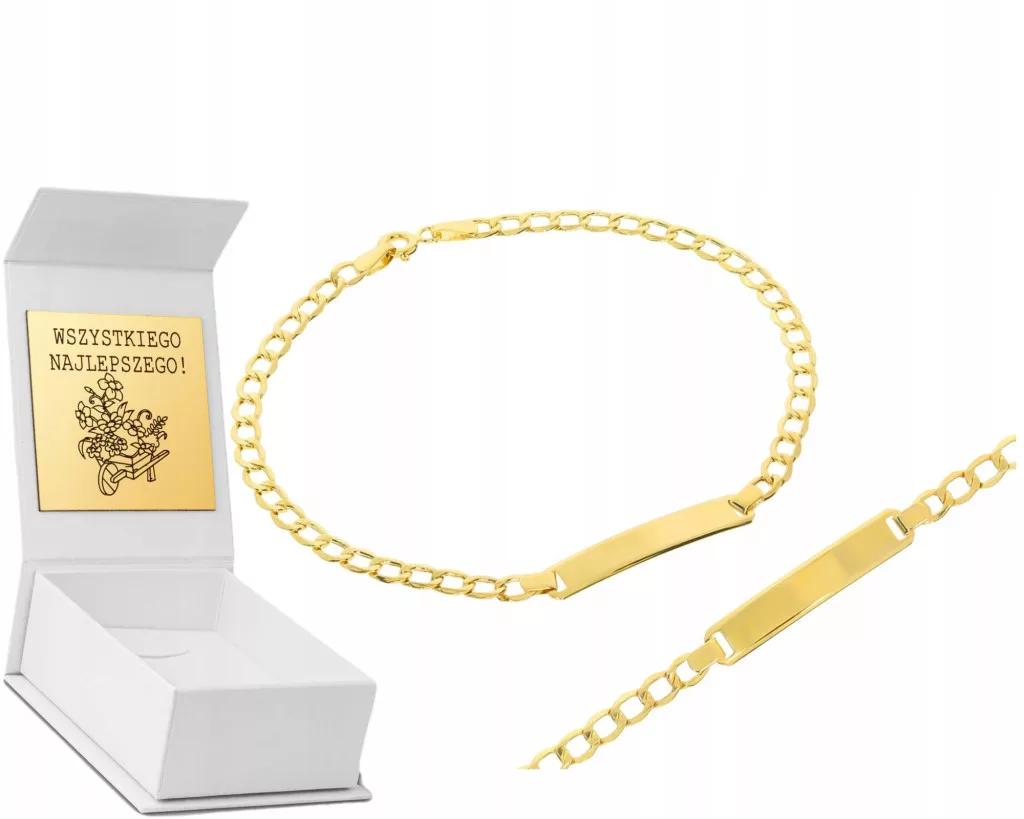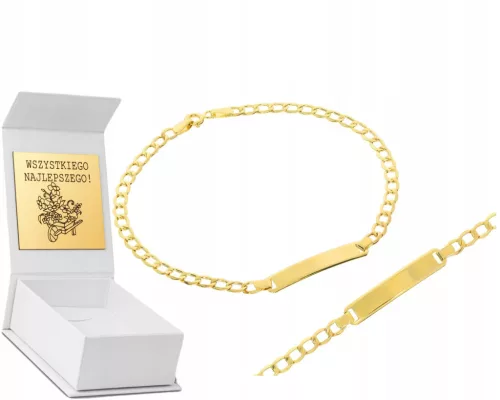 ZŁOTA BRANSOLETKA Z BLASZKĄ POD GRAWER W PRÓBIE 585 PREZENT 20 CM