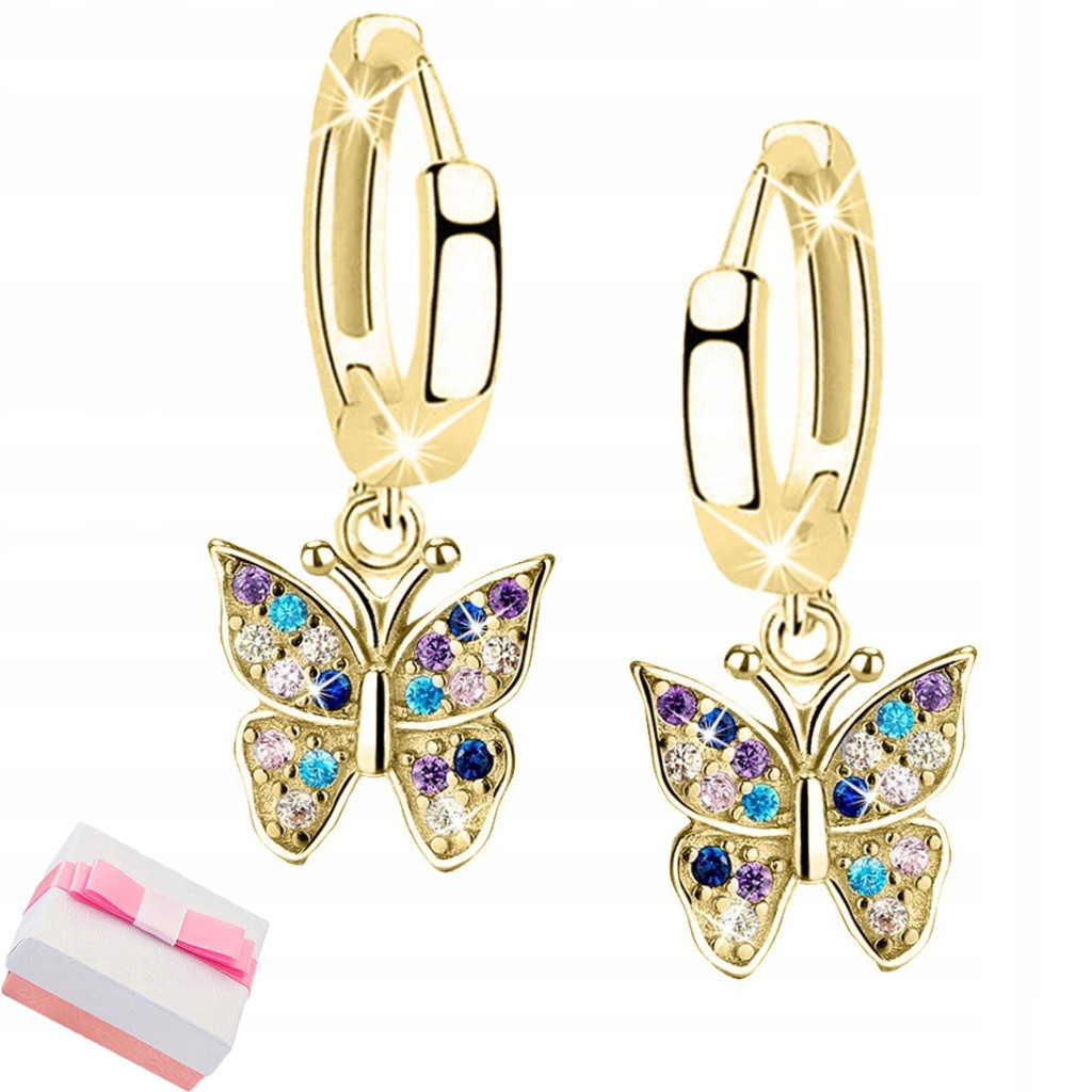 ✅ ZŁOTE KOLCZYKI WISZĄCE DLA DZIEWCZYNKI MOTYLKI KOLCZYKI SREBRO PRÓBA 925 (52/2)