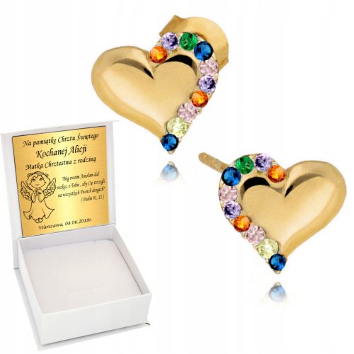 Piękne kolczyki serduszka wysadzane kolorowymi cyrkoniami zapinane na sztyfty.