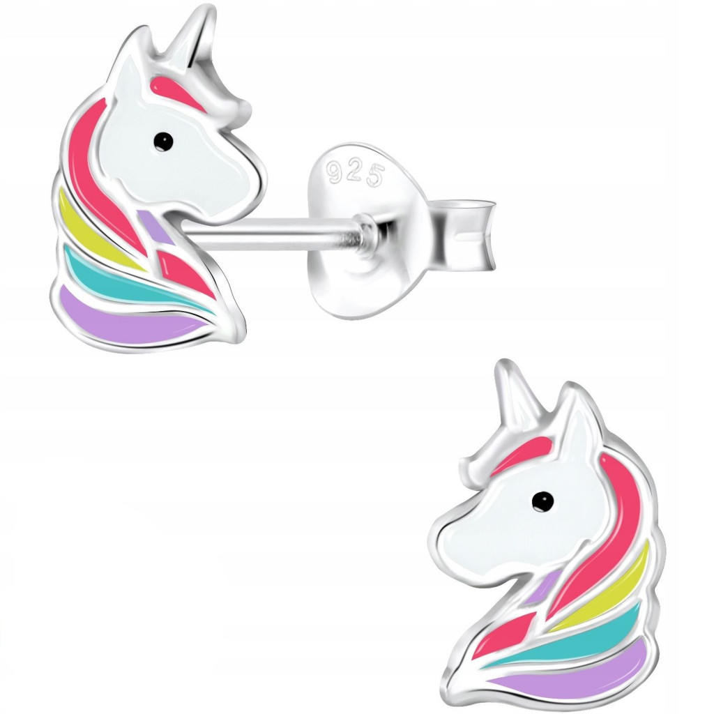 ✅ SREBRNE KOLCZYKI 925 DLA DZIEWCZYNKI JEDNOROŻCE (94/7)