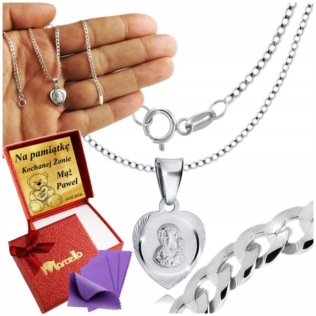 ŁAŃCUSZEK SREBRNY NASZYJNIK 925 DLA KOBIETY MEDALIK SERDUSZKO MATKA BOSKA