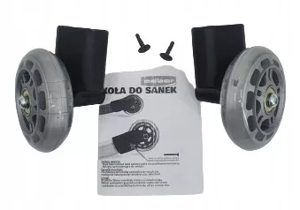 Kauczukowe kółka na podwójnych łożyskach ułatwiają ciągnięcie sanek po nienaśnieżonej powierzchni.