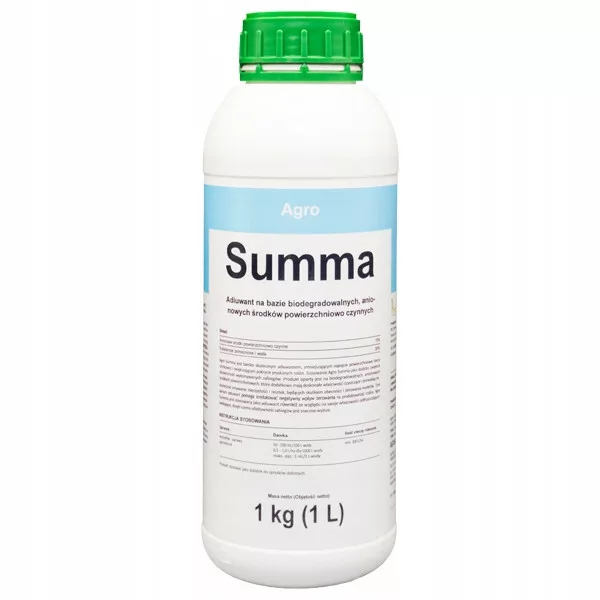 Adiuwant dolistny Agro Summa pozwala zwiększyć przyczepność oraz poprawić działanie stosowanych z nim preparatów. Adiuwant zmniejsza napięcie powierzchniowe cieczy użytkowej, a także poprawia pokrycie opryskiwanych roślin. Agro Summa stosowany jako dodatek do zabiegów ochrony roślin zwiększa ich skuteczność.
