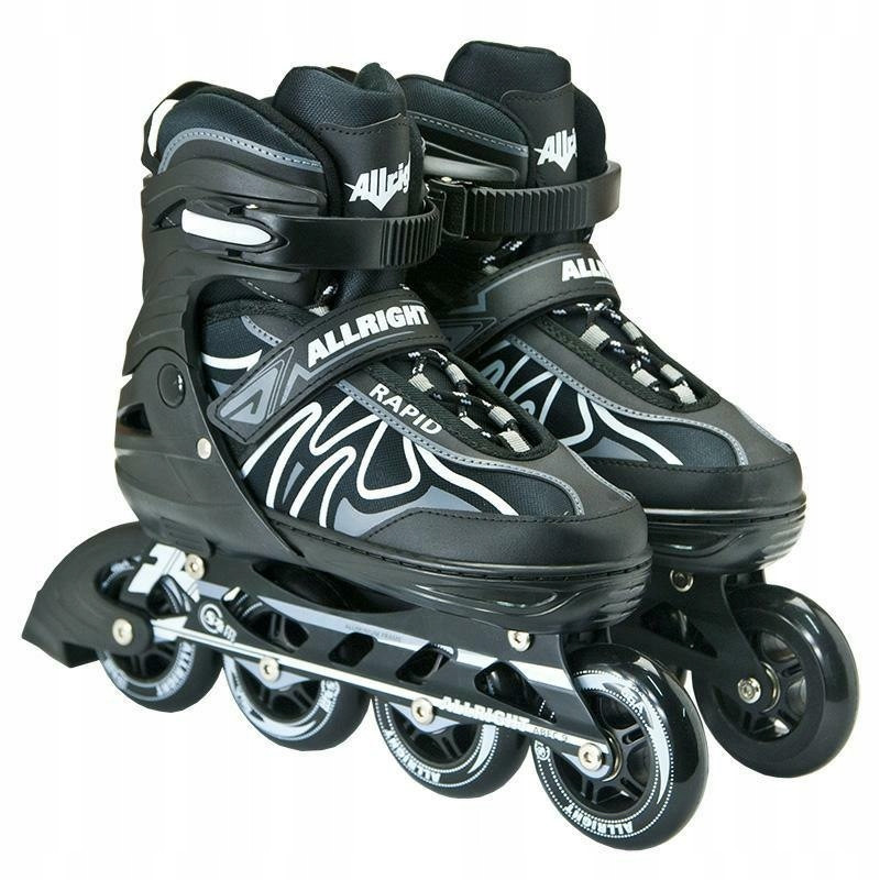 Lekkie, solidne i regulowane rolki marki Allright. To doskonała opcja dla początkujących i bardziej zaawansowanych rolkarzy. Dzięki opcji regulacji rozmiaru możesz idealnie dopasować je do swojej stopy. Warto wziąć to pod uwagę, zwłaszcza gdy stopa użytkownika nie przestała jeszcze rosnąć.
