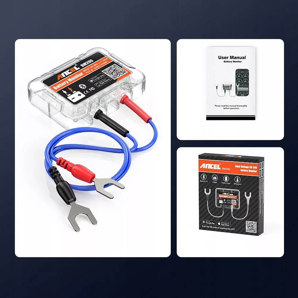 ANCEL BM200 bezprzewodowe monitorowanie stanu akumulatora samochodowego 12V Monitor akumulatora Tester akumulatora nienormalna obsługa alarmów maksymalnie 4 monitory samochodowe