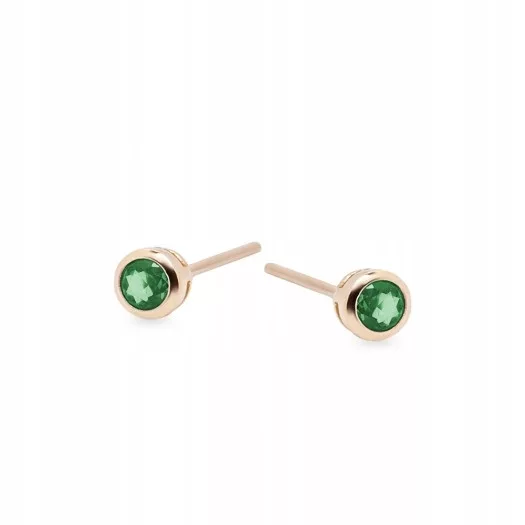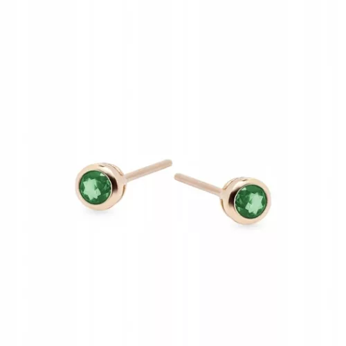 Kolczyki ze srebra próby 925, na sztyfcie zielona cyrkonia w oprawie o średnicy 3 mm.