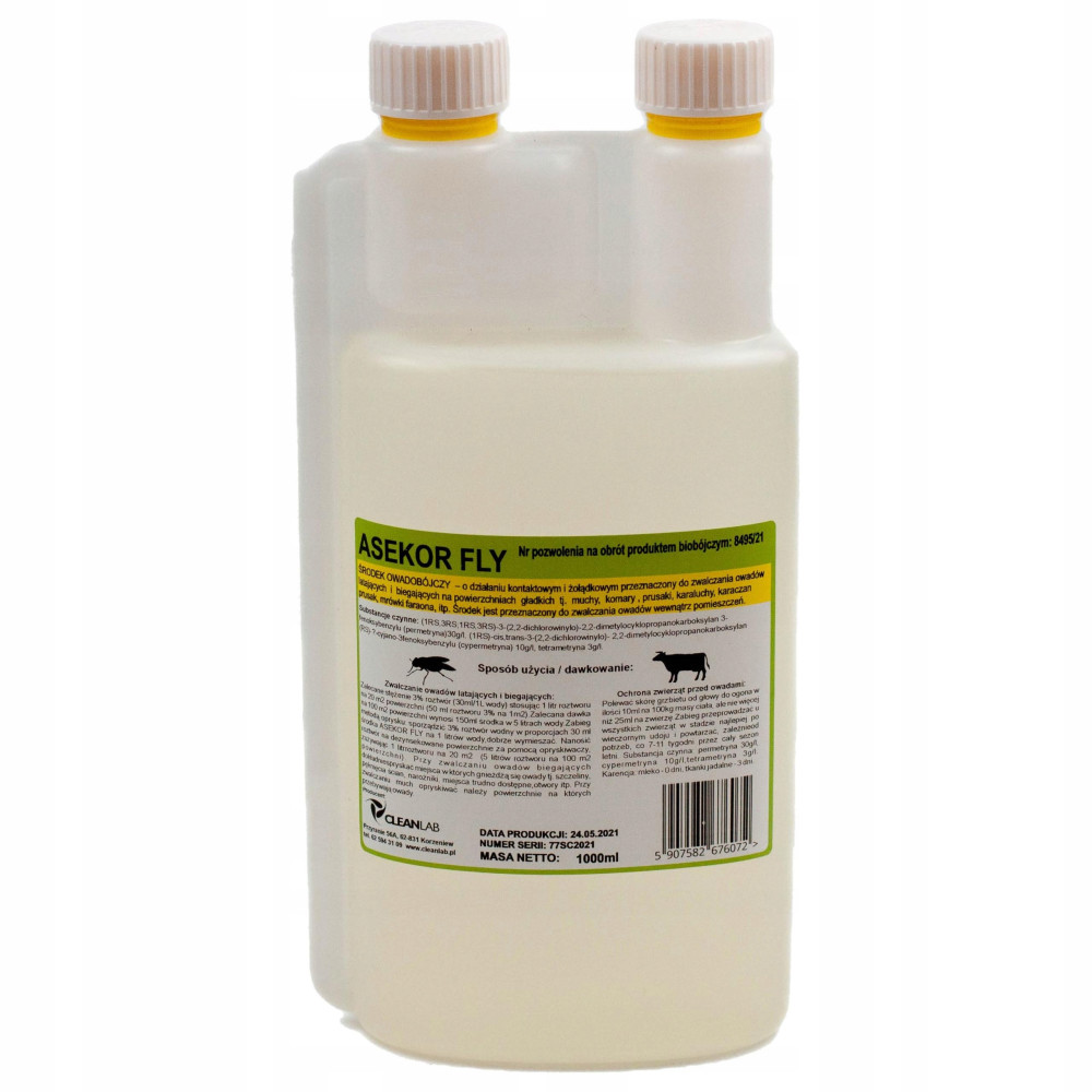 Preparat na owady latające i biegające do polewania skóry zwierząt ASEKOR FLY bezbarwny