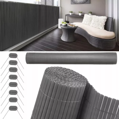 MATA PVC OSŁONA SZARA 100 x 500 cm MATA OSŁONOWA NA BALKON TARAS PŁOT MOCNA