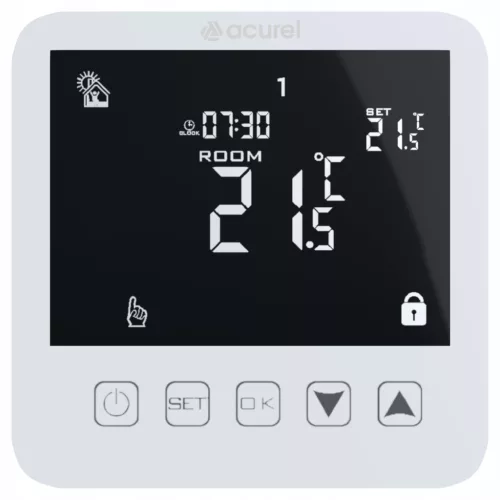 Termostat Acurel HY08WE (AD121) umożliwia dostosowanie różnej temperatury w różnych interwałach czasowych jak i programowanie regulatora w trybie 7 dni, 6+1 dni, 5+2 dni dzięki czemu staje się idealnym narzędziem do stworzenia komfortu cieplnego na miarę Twojego domu oraz potrzeb Twojej rodziny.