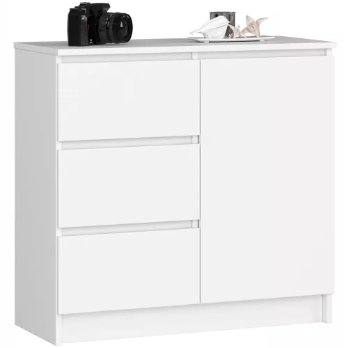 ➡️ Prezentowana przez nas Bezuchwytowa komoda do sypialni biała 3 pojemne szuflady 80 cm nowoczesna jest praktyczna, estetyczna i funkcjonalna.