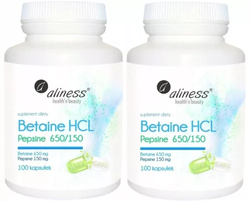 Zestaw Aliness Betaina HCL, Pepsyna 650/150 mg - 2 sztuki - łącznie 200 kapsułek Wspomaganie trawienia Zmęczenie