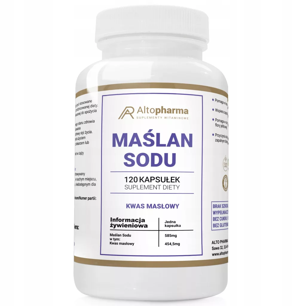 Maślan Sodu 585mg TRAWIENIE ZDROWE JELITA SERCE KWAS MASŁOWY 120 kapsułek