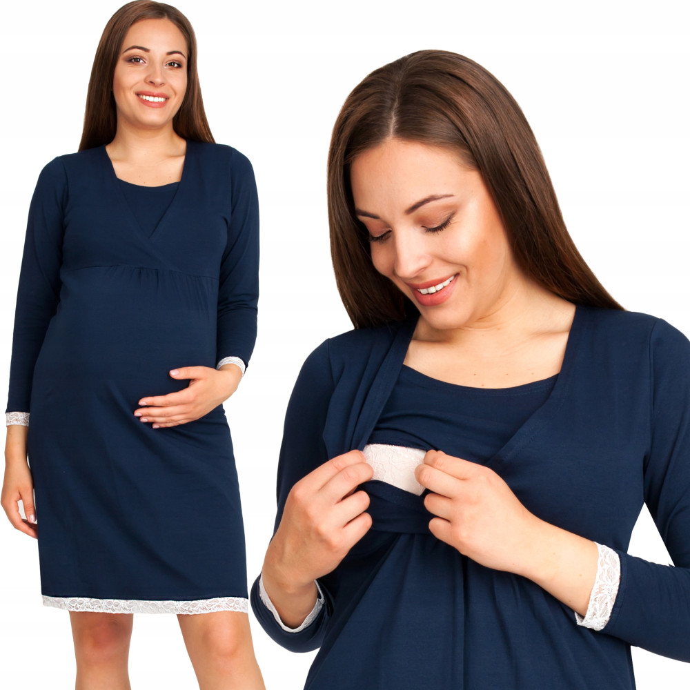 Koszula nocna ciążowa i do karmienia piersią Emi z koronkowym obszyciem.