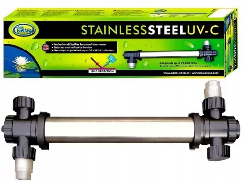Sterylizator australijskiej firmy AQUA NOVA UV 40W posiada obudowę ze stali nierdzewnej, długa obudowa z refleksem zapewnia o 35% większą wydajność sterylizacji.