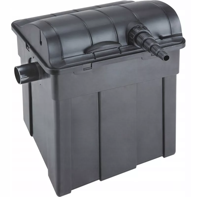 Filtr z lampą UV, przeznaczony do filtrowania wody w stawach i oczkach ogrodowych. Filtr jest wyposażony w pełen zestaw wkładów zapewniających prawidłową filtrację mechaniczną i biologiczną wody.