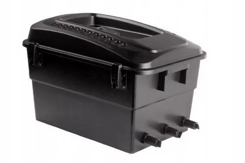 Filtr do oczka wodnego. Zawiera starannie dobrane media filtracyjne. Szczotki zatrzymują grubsze zanieczyszczenia mechaniczne (liście, kawałki roślin), dwie warstwy profilowanej gąbki oraz mata kokosowa wychwytują drobne zanieczyszczenia (muł, zawiesiny), biokulki stanowią podłoże dla bakterii oczyszczających wodę z rozpuszczonych w niej związków azotowych. Dzięki nim realizowana jest więc zarówno filtracja mechaniczna jak i biologiczna. - współpracuje z odpowiednimi pompami AQUAJET PFN - zapewnia filtrację biologiczną i mechaniczną - jest przystosowany do pracy ciągłej - może być stosowany w zanurzeniu jak również na zewnątrz oczka