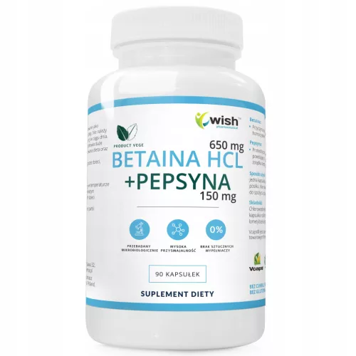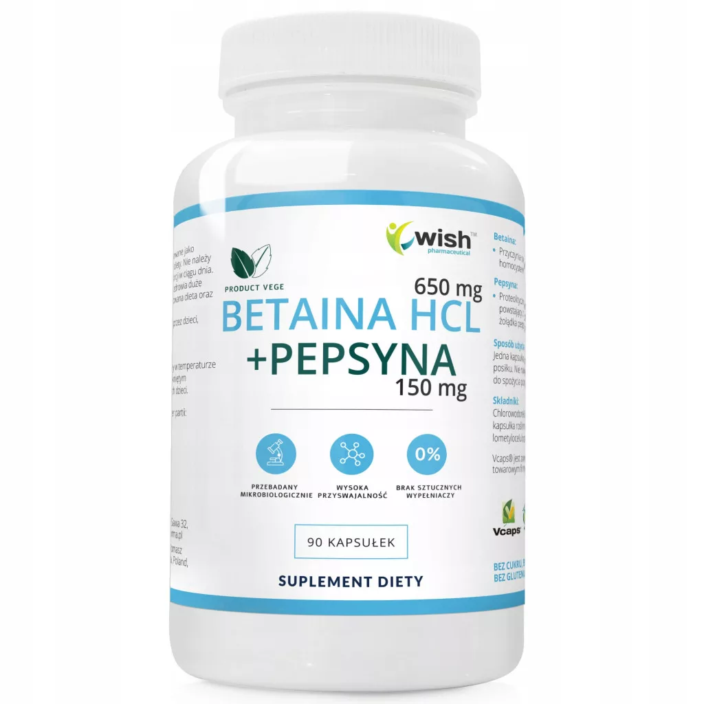 BETAINE 650mg HCL PEPSYNA betaina trawienie 90 kapsułek PRODUKT VEGE