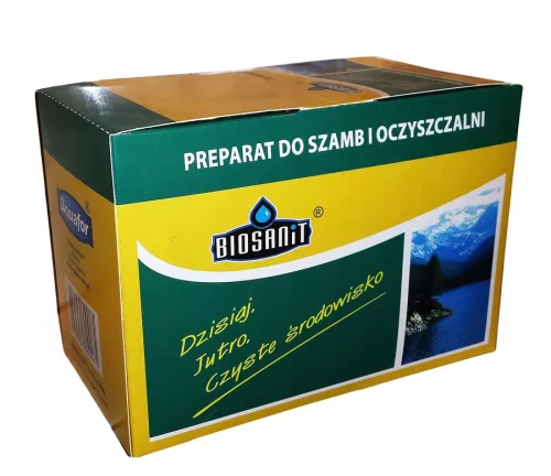 BIOSANIT bakterie w saszetkach od lat cieszą sie uznaniem wśród posiadaczy oczyszczalni ekologicznych, ceniony za jakość i atrakcyjną cene doskonale radzi sobie z unieszkodliwianiem tłuszczów  i przykrych zapachów oraz rozkładem cząstek stałych w oczyszczalniach przydomowych i szambach bezodpływowych 40 szt wygodnych do aplikacji saszetek wystarcza na 30 miesięcy eksploatacji oczysczalni o pojemności 3000 l
