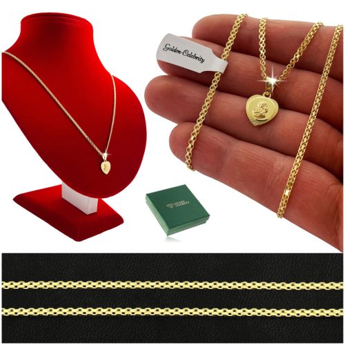 • Przedstawiamy państwu piękny unikatowy złoty naszyjnik na łańcuszku bismark w komplecie z medalikiem. Produkt wykonany jest z najwyższej jakości srebra próby 925, które zostało pokryte warstwą złota o próbie 585 (14 karatów). Ten model naszyjnika z pewnością doceni każda kobieta. Produkt jest solidny i wytrzymały więc spokojnie posłuży długi czas.