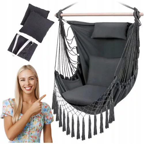 ✅ NAJMODNIEJSZY WISZĄCY FOTEL BRAZYLIJSKI ✅ STYLOWY DESIGN ✅ PODUSZKA POD GŁOWĘ ✅ PRAKTYCZNA KIESZEŃ ✅ 2 PODUSZKI ✅ MOCNA DREWNIANA BELKA ✅ AŻ 80% BAWEŁNA ✅ POKROWIEC ✅ UDŹWIG DO 150KG ✅ ŁATWY MONTAŻ ✅ IDEALNY DO POKOJU, SALONU, OGRODU, NA BALKON ✅ STYL BOHO ✅ ELEGANCJA ✅ RELAKS I WYGODA ✅