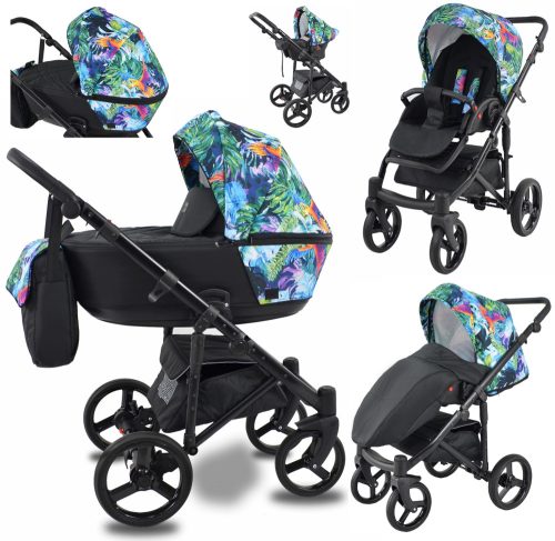 Babe Boss Cavo Premium 3in1 Kinderwagen Blumen, Grün, Graphit, Beige
