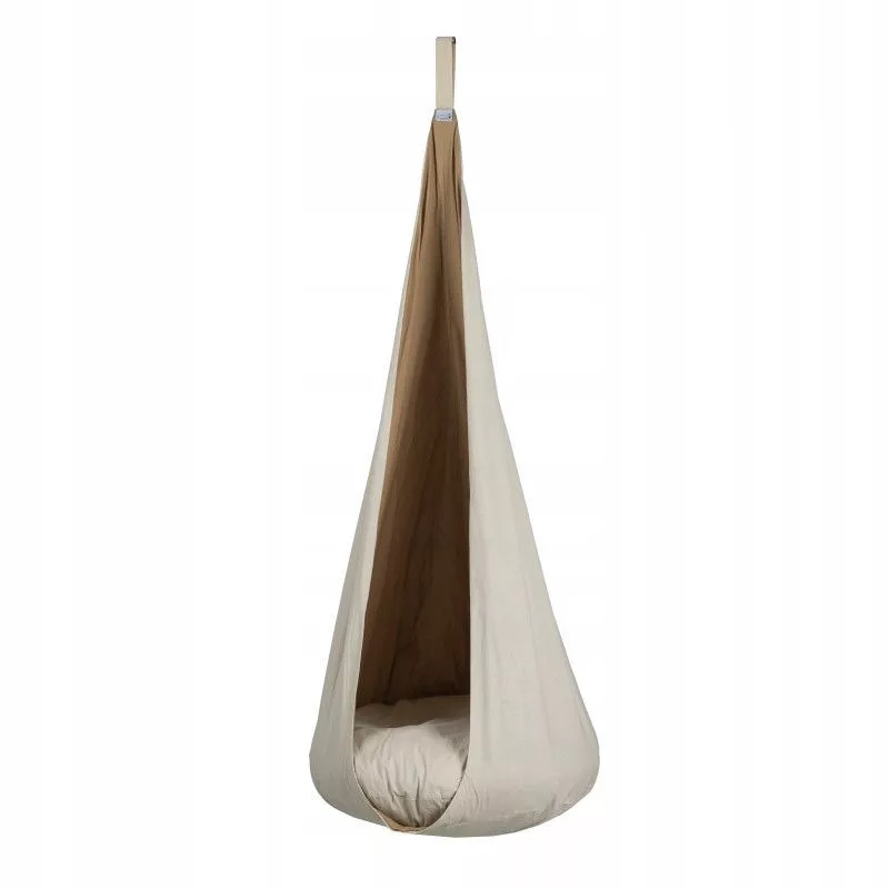 Huśtawka kokon dla dzieci, bawełna. Zachęcająca do zabaw i bezpieczna w użyciu huśtawka hamak kokon siedzisko bujak dla dzieci to produkt polski, dostępny w wielu wersjach kolorystycznych: szarej, białej, różowej, niebieskiej, écru lub z biało-czarnym z nadrukiem w pepitkę lub gładka. Proponowany wyrób został wykonany w 100% z bawełny opatrzonej certyfikatem jakości. Huśtawka typu kokon jest bardzo wygodna w użyciu i nie ulega deformacji.