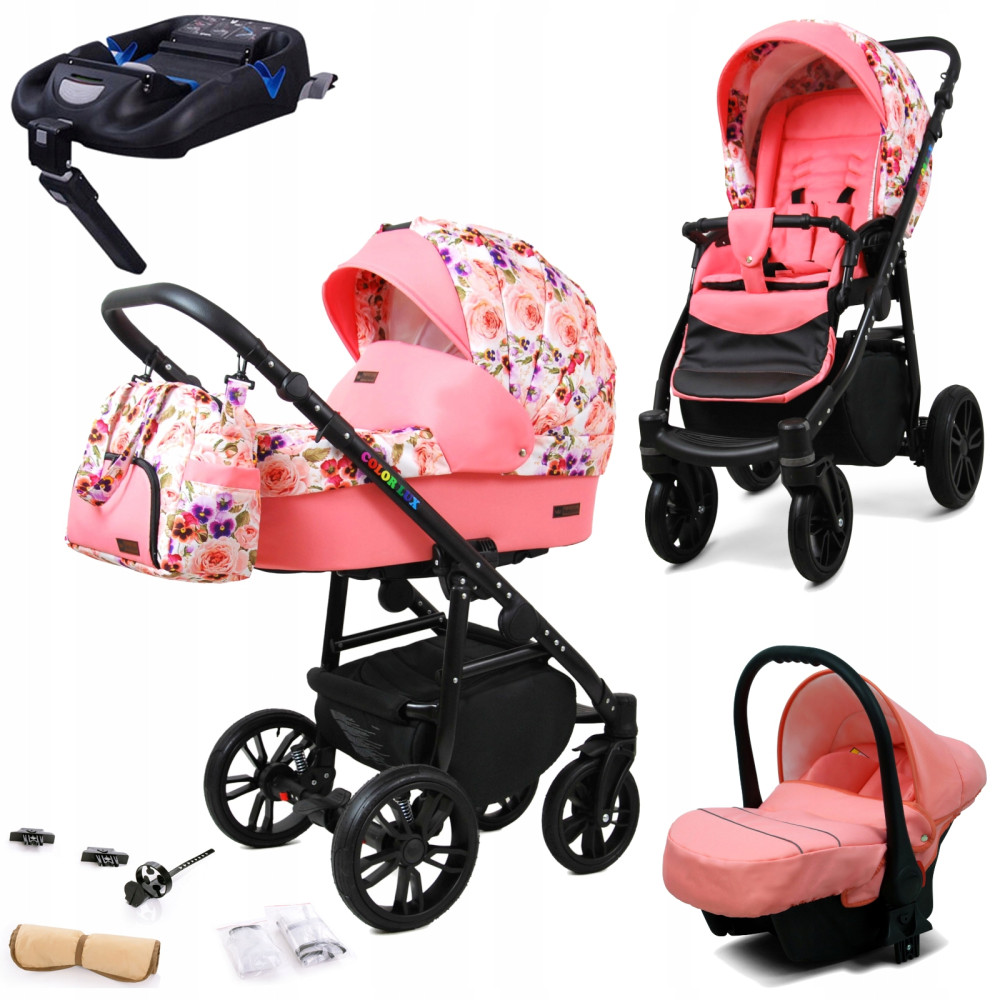 Wózek dziecięcy 4w1 BabyLux Color Lux ALU - głęboki, spacerowy, fotelik samochodowy + baza ISOFIX
