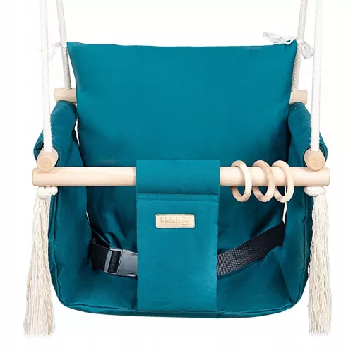 Huśtawka w 100% ekologiczna, wykonana z naturalnych materiałów, oddychająca i przewiewna. Materiał z którego została wykonana huśtawka został przebadany i uzyskał pozytywną rekomendację odpowiedniej instytucji badawczej. Huśtawka jest więc w pełni bezpieczna dla skóry Państwa dziecka. Poduszka z hipoalergicznym wypełnieniem z kulki silikonowej najwyższej jakości. Siedzisko, podłokietniki oraz boki huśtawki zostały dodatkowo wypełnione oraz usztywniane podwójną warstwą hipoalergicznej włókniny silikonowej dla dodatkowej ochrony oraz wygody.