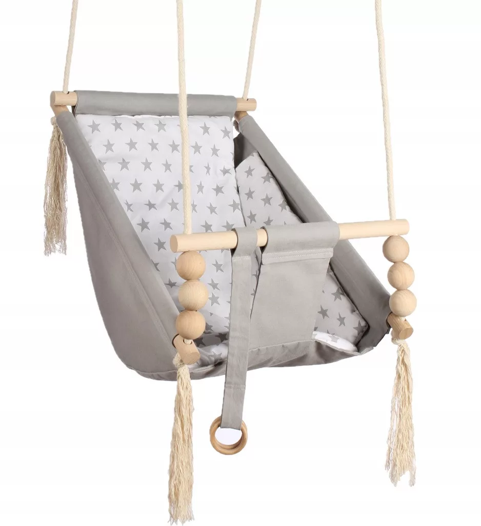 Przedstawiamy Państwu edukacyjną huśtawkę dla dzieci, marki KIDABOO™ - Bujaczek 3 w 1 (Kołyska, Bujaczek, Leżaczek), wykonaną w stylu skandynawskim, bezpieczną, ekologiczną i dopracowaną w każdym detalu. Posiada deklarację zgodności CE/WE, potocznie nazywaną CERTYFIKATEM ZGODNOŚCI (z określoną normą) oraz PASY BEZPIECZEŃSTWA