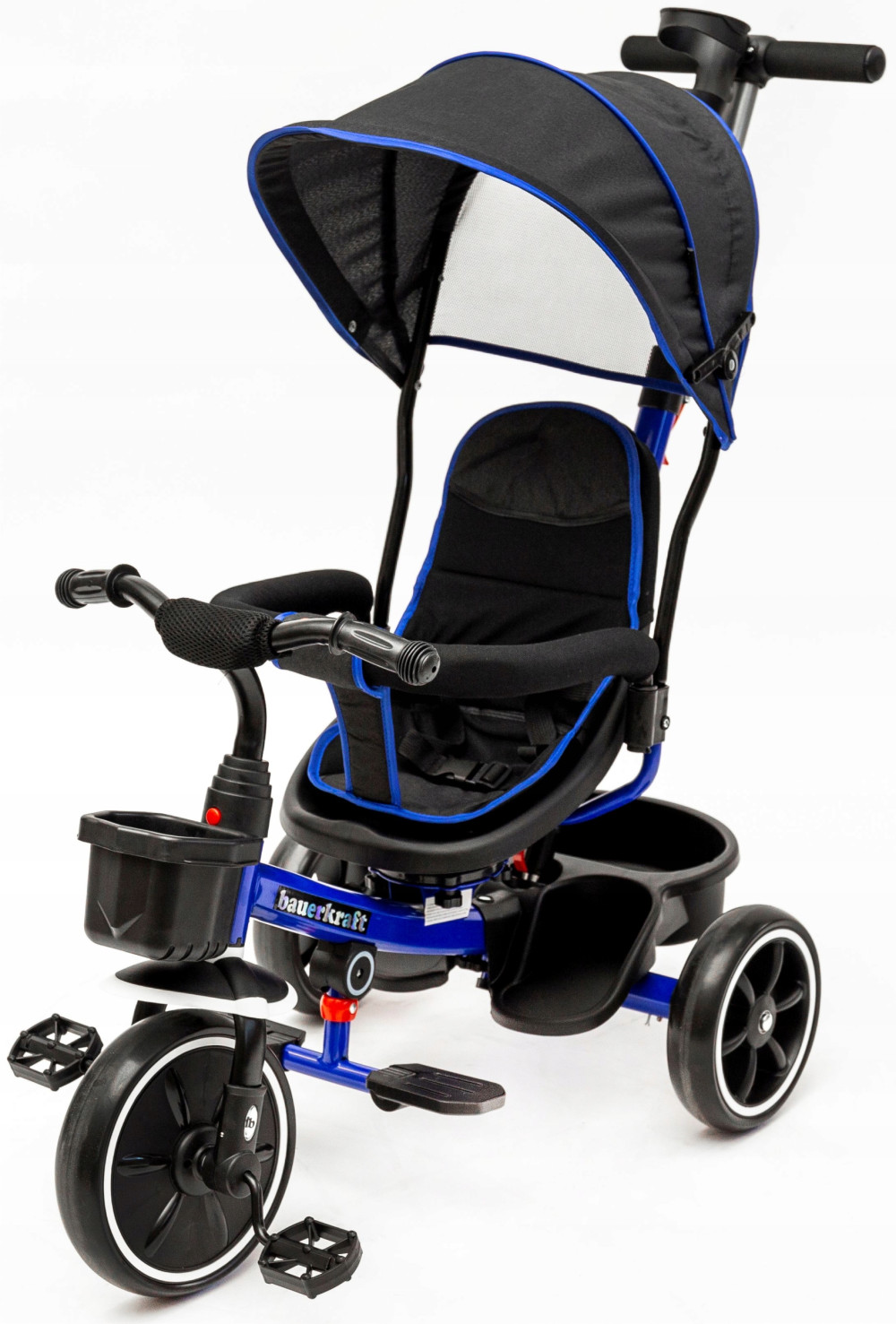 Dreirädriges Kinderfahrrad, drehbar, 2in1, marineblauer Kinderwagen