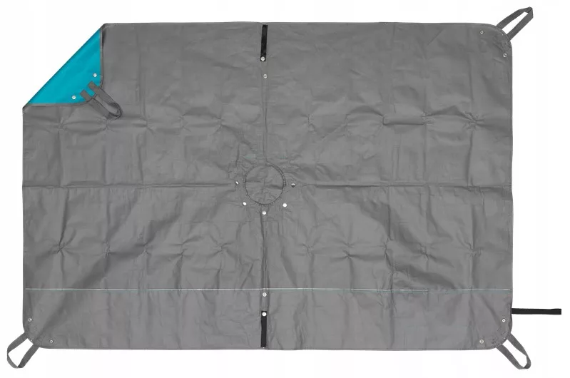 Zamykany otwór pośrodku maty i cztery uchwyty do przenoszenia ułatwiają czyszczenie i opróżnianie.