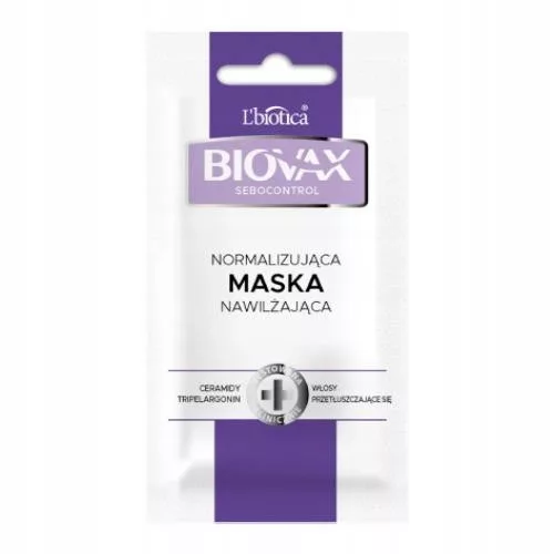 BIOVAX Sebocontrol to trychologiczna kuracja normalizująca do pielęgnacji włosów z tendencją do przetłuszczania oraz łojotokowej, wrażliwej skóry głowy z objawami łuszczenia się i świądu. Ceramidy, wnikając we włókna włosów, odbudowują ich ubytki, zapewniając włosom odpowiednie nawilżenie. Tripelargonin, emolient roślinny, nadaje włosom miękkość i gładkość, ułatwiając ich rozczesywanie, oraz chroni przed przesuszeniem i wpływem czynników zewnętrznych. Lekka formuła nie obciąża włosów, pozwalając im dłużej zachować świeżość.