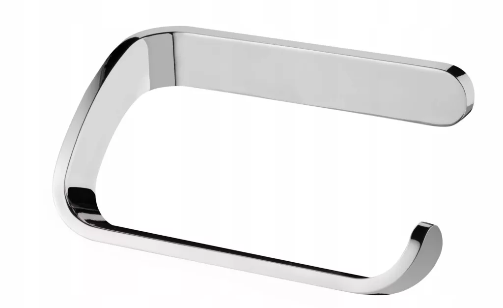 Uchwyt na papier toaletowy wykonany ze ZnAl-u (stop cynku i aluminium) pokryty połyskującym chromem.