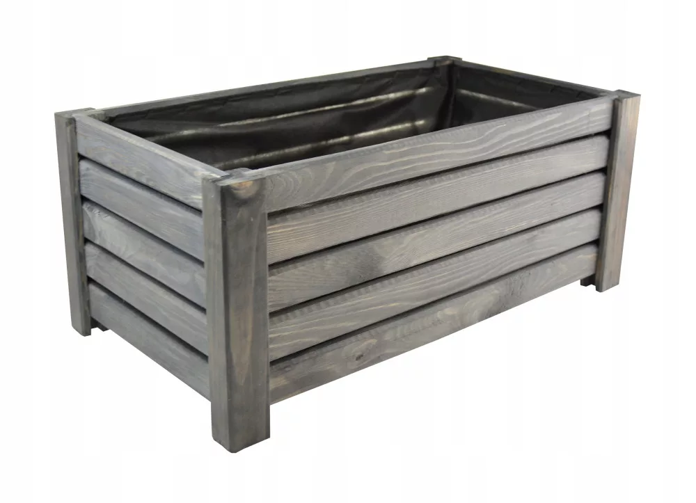 • Donica w kolorze ANTRACYTOWYM/SZARYM jak na zdjęciach z widocznymi słojami drewna i sękami.