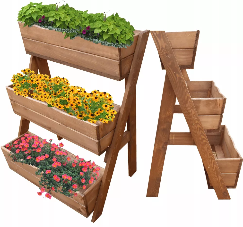 Donica kaskadowa wykonana z certyfikowanego drewna sosnowego, zabezpieczona impregnatem ciśnieniowo ,odporna na warunki atmosferyczne.
