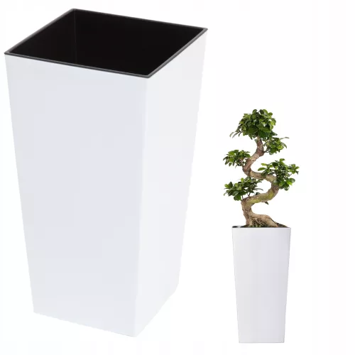 HOHER BLUMENTOPF, H56 CM, WEISSER GARTENTOPF MIT EINSATZ, BALKON-BLUMENSTÄNDER
