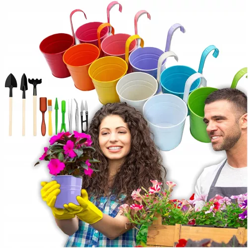ZESTAW 10 SZT. KOLOROWYCH METALOWYCH DONICZEK WISZĄCYCH Z HAKIEM + GRATIS