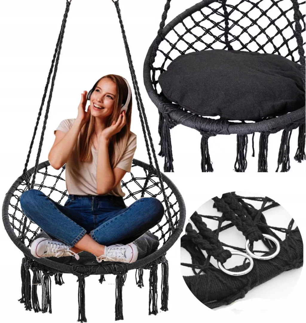 ✅ WISZĄCE KRZESŁO ✅ FOTEL OGRODOWY  ✅ MIĘKKA OKRĄGŁA PODUSZKA ✅ STYLOWY DESIGN ✅ SOLIDNA STALOWA RAMA ✅ RĘCZNIE PLECIONA LINA ✅ AŻ 80% BAWEŁNY ✅ UDŹWIG DO 150KG ✅ ŁATWY MONTAŻ ✅ IDEALNY DO POKOJU, SALONU, OGRODU, NA BALKON ✅ STYL BOHO ✅ ELEGANCJA ✅ RELAKS I WYGODA ✅
