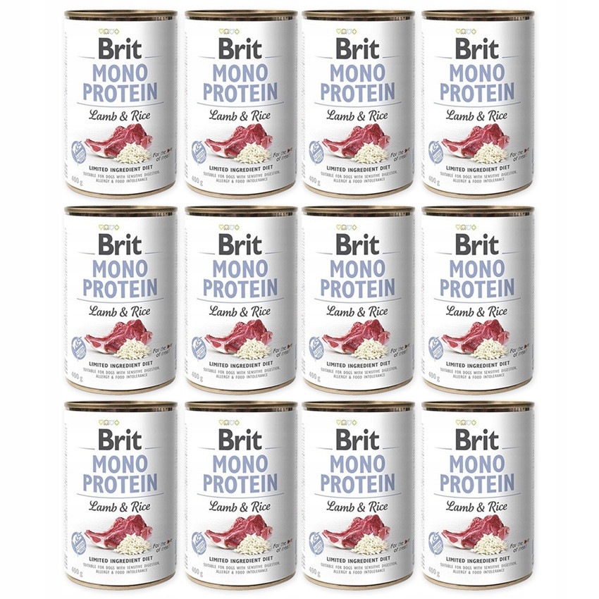 BRIT MONO PROTEIN LAMB & RICE - MOKRA KARMA JEDNOBIAŁKOWA DLA PSA - JAGNIĘCINA Z RYŻEM BRĄZOWYM - Zestaw 12x400g (4,8kg)