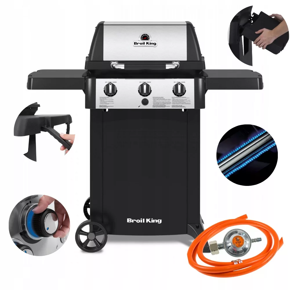 Dzięki kompaktowym rozmiarom grilla Gem 310 możemy korzystać z niego na tarasie czy balkonie. Składane półki boczne pozwalają zaoszczędzić miejsce, a kiedy są rozłożone służą jako blat roboczy. Broil King Gem 310 posiada 3 palniki tubowe ze stali szlachetnej o mocy 6,9 kW, do tego 3 aromatyzery Flav-R-Wave również ze stali szlachetnej, które nadają daniom niesamowitym smak i aromat.