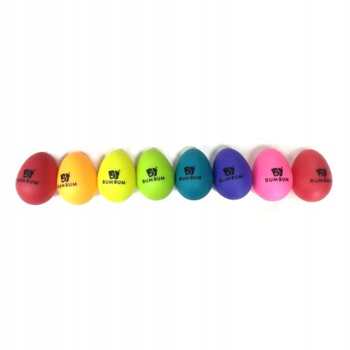 Zestaw 8 kolorowych plastikowych BUM BUM® Jajek w praktycznym woreczku do ich wygodnego przechowywania.
