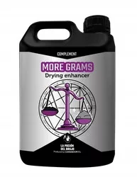 MORE GRAMS to unikalna formuła na świecie: sprawia, że rośliny tracą mniej na wadze w procesie suszenia. Działa poprzez zwiększenie retencji wody w kwiatach, nawadnia przestrzeń między włóknami i pozwala na przyswojenie tej bogatej w składniki odżywcze wody w końcowej fazie kwitnienia. Masa organiczna wzrośnie tuż przed cięciem, dzięki czemu kwiat straci 10% / 20% mniej na wadze podczas fazy suszenia.
