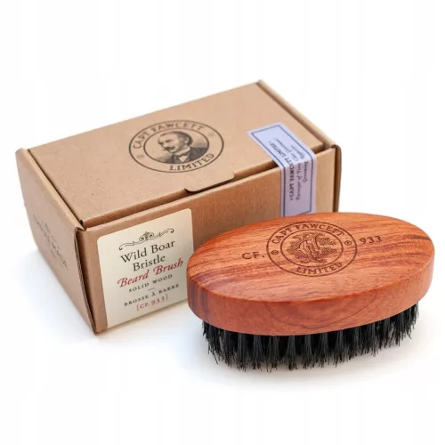 Szczotka do brody Captain Fawcett, wykonana w 100% ręcznie z naturalnego włosia dzika i drewna dębowego. Dzięki nieregularnej długości włosia, szczotka idealnie nadaje się zarówno do krótkich, jak również całkiem długich bród.