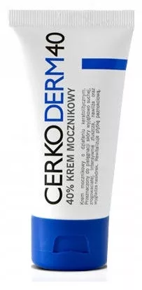 Cerkoderm 40 to 40% krem mocznikowy do pielęgnacji skóry suchej, zrogowaciałej. Polecany na płytkę paznokciową ze zmianami bruzdowania i przerostem oraz w łuszczycy paznokcia. Cerkoderm40 intensywnie zmiękcza i złuszcza zrogowaciały naskórek. Rewitalizuje płytkę paznokciową i intensywnie nawilża i wygładza.