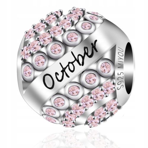 Piękna zawieszka charms miesiąc październik (po angielsku) z pięknymi cyrkoniami, do bransoletki modułowej charms, wykonana ze srebra 925.